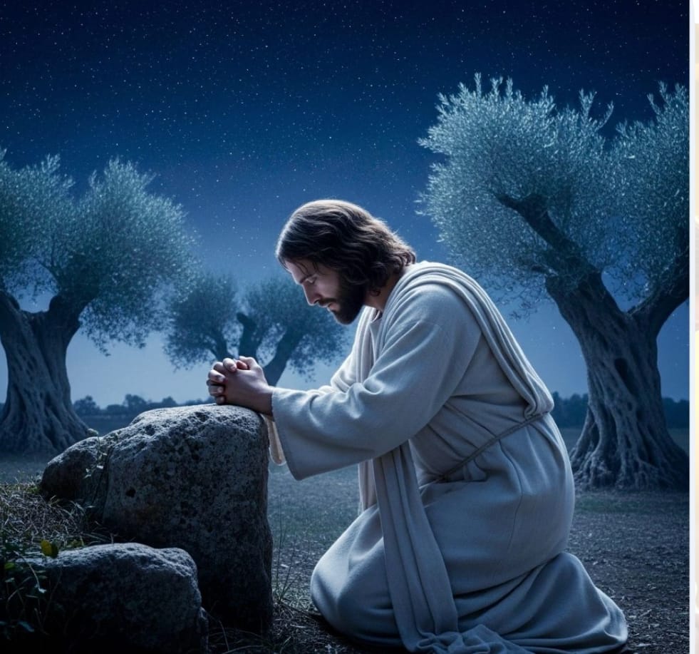 主耶穌同門徒來到客西馬尼園,耶穌吩咐門徒坐在一旁等他。主耶穌帶著彼得、雅各和約翰前往禱告。耶穌向他們說:「我現在心裏滿是憂傷,非常難過,你們在這裏等我,但要保持清醒。主耶穌向前行,就伏在地上禱告說:「我的父親,如果可以,求你將這苦杯離開我。不要照我的意思,要按你的意思。」耶穌當刻心情非常沉重和恐懼。