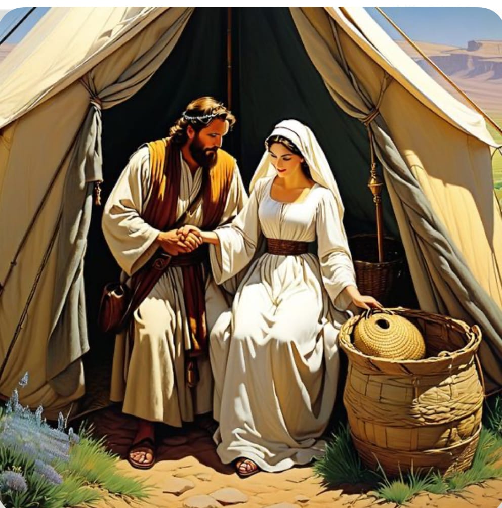 老僕人將他所辦一切事告訴以撒,這是出於上帝安排,以撒心裏非常高興。以撒便領利百加進入了他母親撒拉的帳蓬,娶了利百加為妻,而且非常愛她。自從他母親離世後,這是他第一次得到安慰。